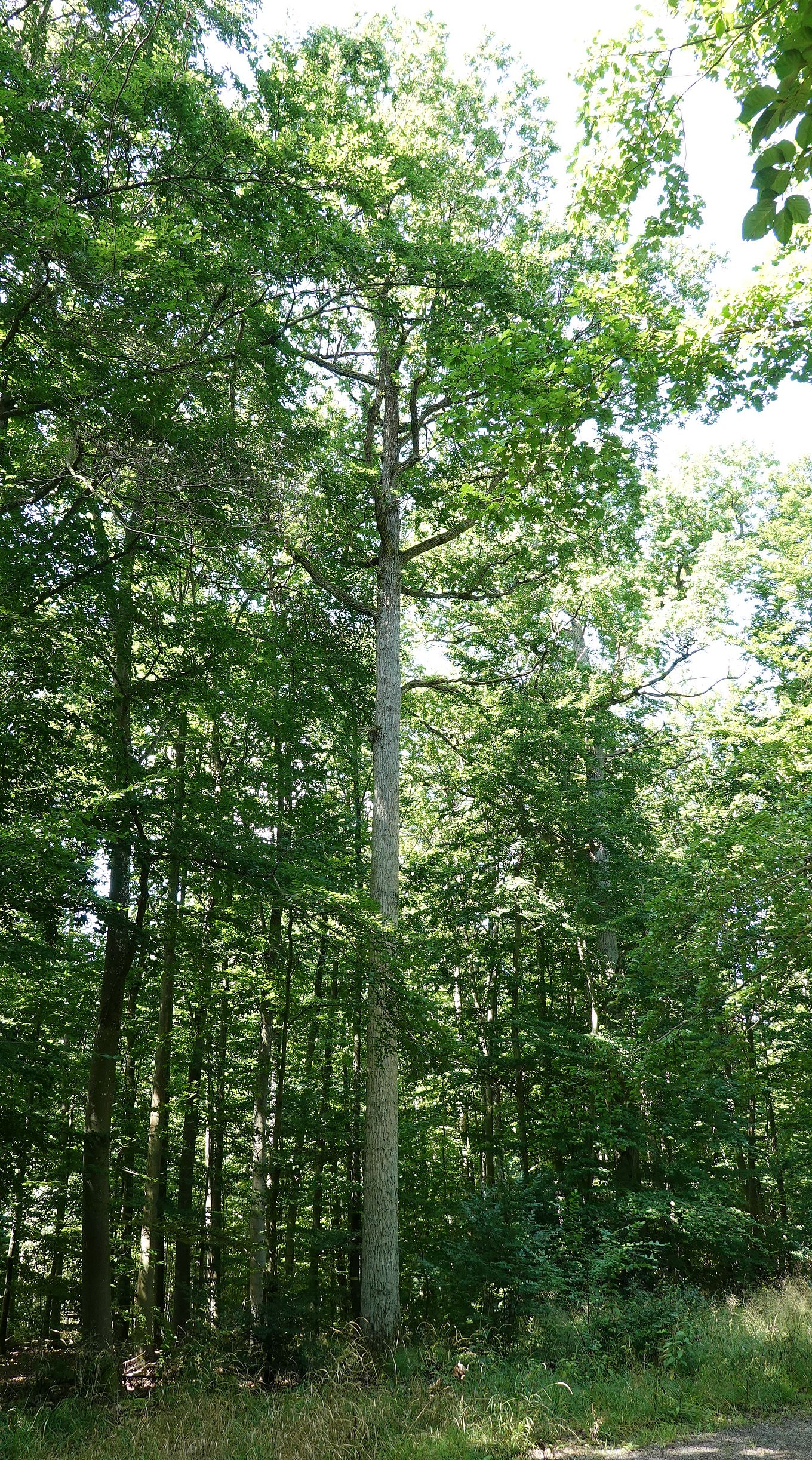 Am linken Wegesrand steht kaum beachtet, weil fast unbekannt, die Elsbeere. Im Volksmund auch die „schöne Else“ genannt. Anmutig mit feingelockter Rinde, fünfgezackten Blättern ähnlich einer Hand. Sie wirkt exotisch und ist doch eine heimische Schönheit. Sie steht dort wo Buche oder Eiche es ihr gestatten. Im Herbst trägt sie rötlich braune Beeren und färbt ihre Blätterpracht feuerrot.